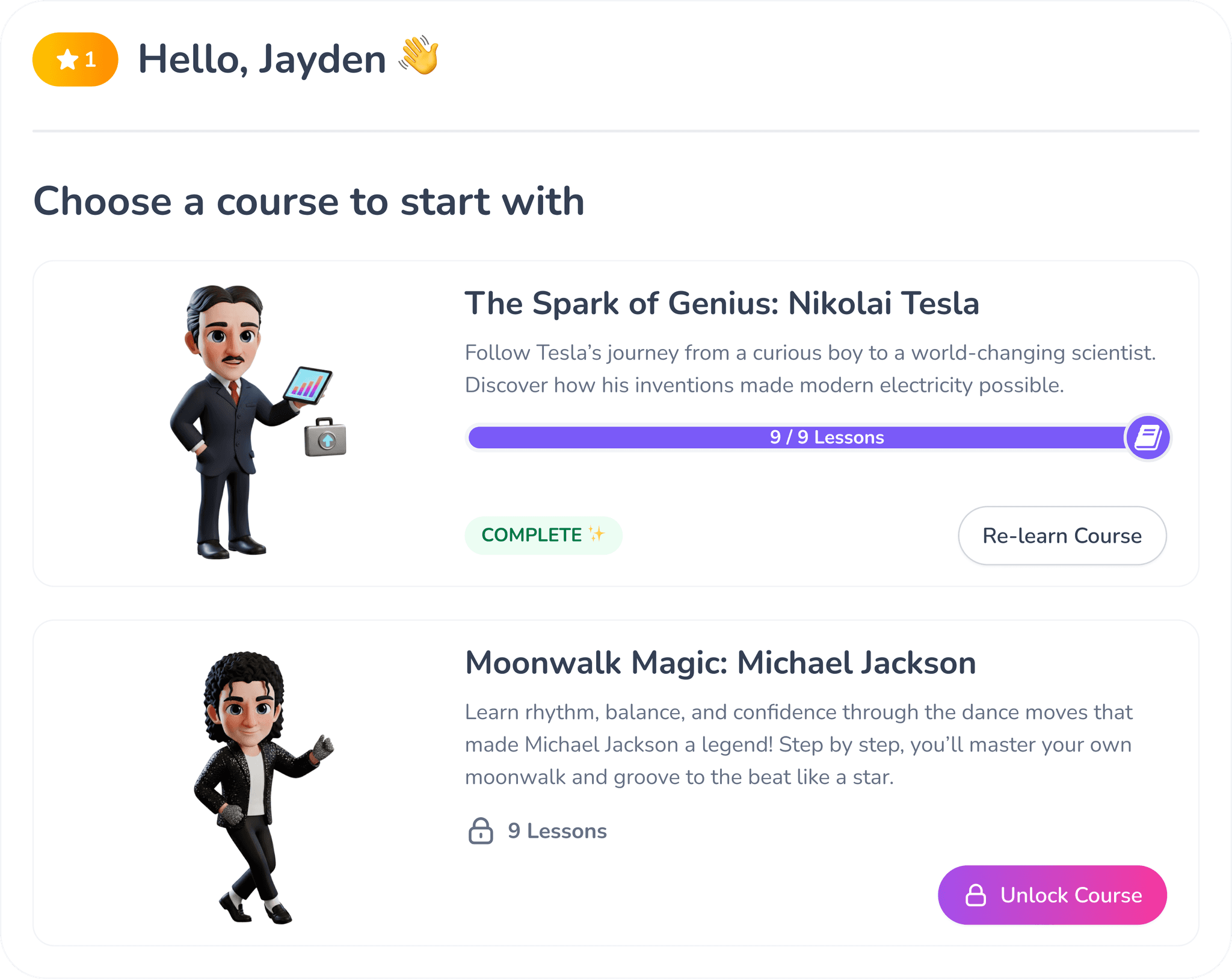Automatically adjusts lessons to each child’s level and progress - no one-size-fits-all learning.